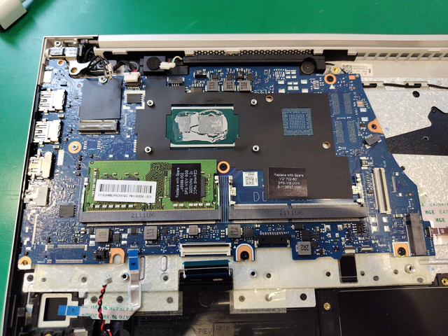 このような場合、キーボードの交換が必要です。この機種の場合、キーボードのみを交換することもできますが、非常に大変な作業になります。キーボードを固定するためプラスチックを溶かして融着させているためです。
